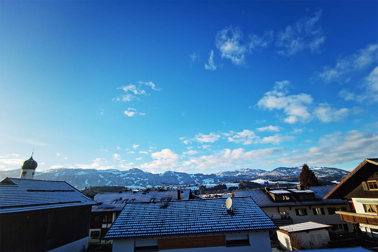 Abgerundet wird das Ganze mit einem großen Panoramabalkon, der sich dem Apartment auf der Westseite anschließt. Hier können Sie den Sonnenuntergang über den Allgäuer Bergen der Hörnerkette genießen.